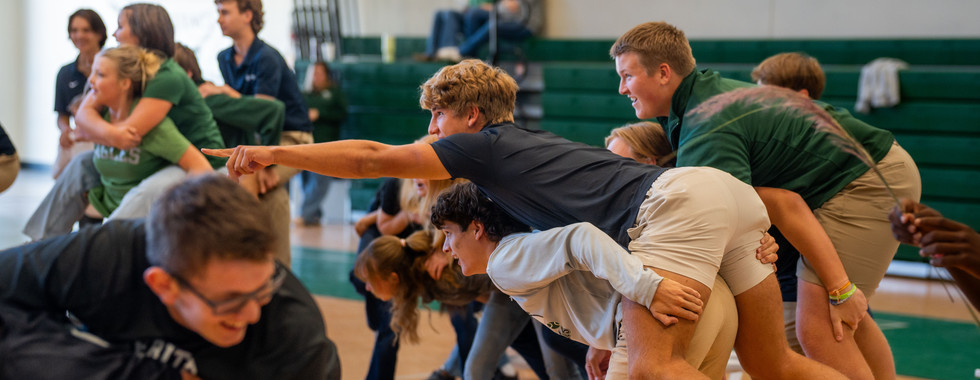 Upper School students play house games on every Friday, the latest being a game where students hop into each other's laps upon direction of Mr. Phillips...