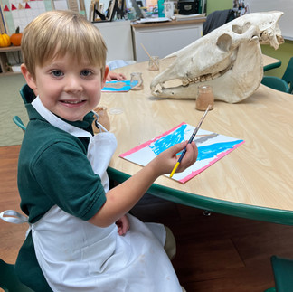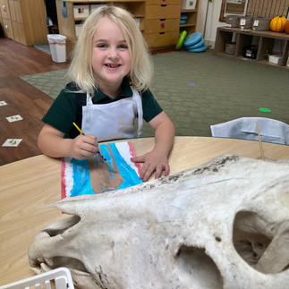 Kindergarten painted a horse skull recalling Georgia O’Keeffe's many paintings using bones from her time in New Mexico.